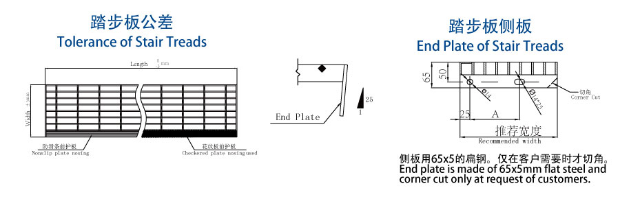 與梯梁焊接的鋼格板樓梯踏板的代碼為TA,與梯梁用螺栓連接的鋼格板樓梯踏板的代碼為TB。